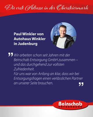 Modellen überzeugt das Team durch fachliche Kompetenz, faire Preise und hohe Kundenorientierung. Wir sprachen mit Paul Winkler über die Zusammenarbeit mit der Beinschab Entsorgung GmbH.