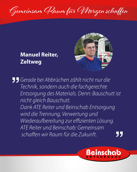 Dank ATE Reiter und Beinschab Entsorgung wird die Trennung, Verwertung und Wiederaufbereitung zur effizienten Lösung. ATE Reiter und Beinschab: Gemeinsam schaffen wir Raum für die Zukunft."